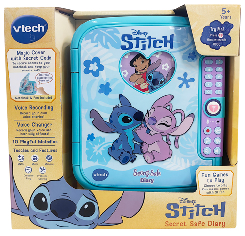 Write down all of your secret thoughts and keep them safe with the Disney Stitch Secret Safe Diary! Create your very own 4-digit passcode to protect all your notes. Includes a 60 page notebook, pen and a secret compartment. Features voice recording, voice changing effects, maths games and a selection of playful melodies that Stitch would love to Hula dance to! Includes 10 playful melodies and teaches maths, music, memory, creative play and problem-solving.